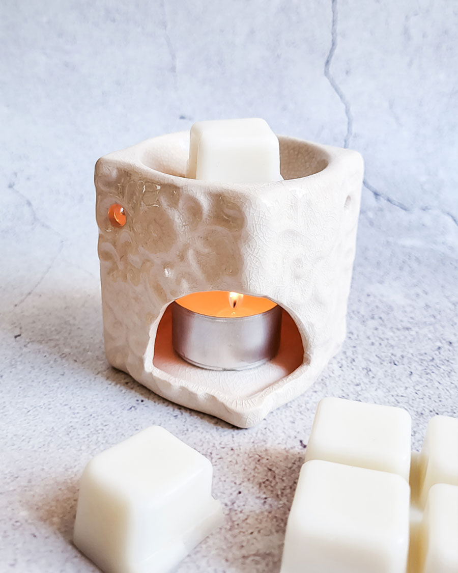 1. Košček dišečega voska položite v posodico izparilnika, ki je na ravno in stabilno podlago. Prižgite svečko in počakajte, da se vosek začne topiti.